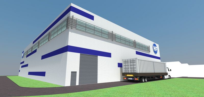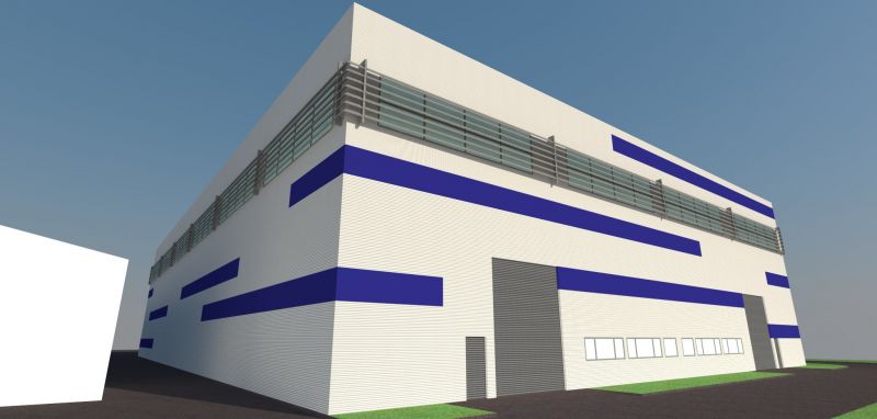 Hala za montažu strojeva pravilno je i precizno dizajniran objekt u sklopu poduzetničke zone u Valpovu. Dinamičnost u oblikovanju pravilnog kubusa postignuta je horizontalnim trakama u plavoj boji na pročelju koje simboliziraju proces proizvodnje i kretanja.