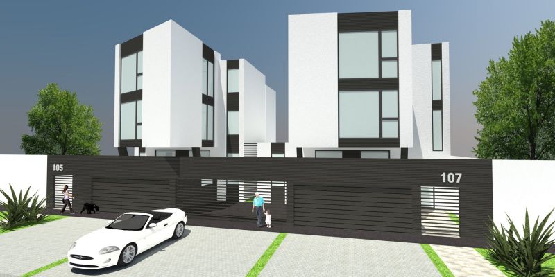 Stambenu zgradu u Dubrovačkoj ulici čine dva objekta s ukupno 6 stanova. Orijentacija prostora i vizure iz stanova bili su primarni ciljevi projektiranja, s obzirom na lokaciju parcele. Statično prizemlje zgrade, suprotno je dinamičnom oblikovanju katova, koji kao katane sijeku prostor iznad tla. Stanovi su trosobni i četverosobni. Jednostavna shema boja daje dodatnu dinamiku vertikalnoj kompoziciji objekta.